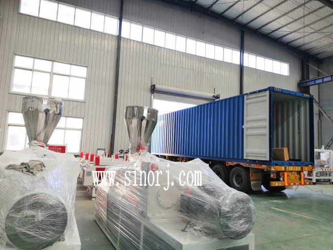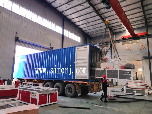 試機(jī)成功的俄羅斯型材設(shè)備裝柜中,扣板生產(chǎn)線,扣板線條生產(chǎn)線,PVC穿線槽生產(chǎn)線。。。。。。連發(fā)三天
